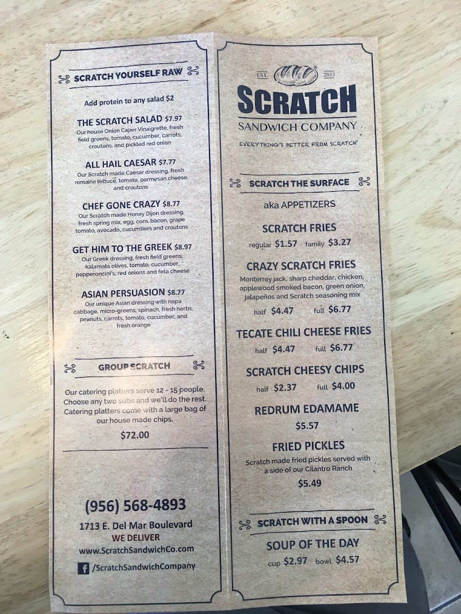 Welcome to the delightful world of Scratch Sandwich Company & Brunch, located at 1713 E Del Mar Blvd, Laredo, TX. This culinary gem offers a range of expertly crafted sandwiches and satisfying salads that are sure to please any palate.